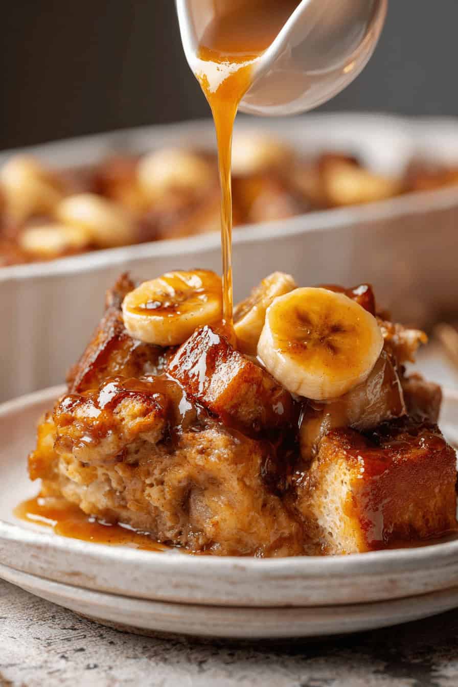 This Ultimate BANANAS FOSTER BREAD PUDDING can be assembled up to 4 hours ahead of baking – simply cover and refrigerate until ready to cook. If baking from cold, add an extra 10-15 minutes to the cooking time. The rum extract provides the classic bananas foster flavor without alcohol, but you can substitute with 2 tablespoons of dark rum if preferred. For extra richness, serve with a dollop of vanilla ice cream or freshly whipped cream.