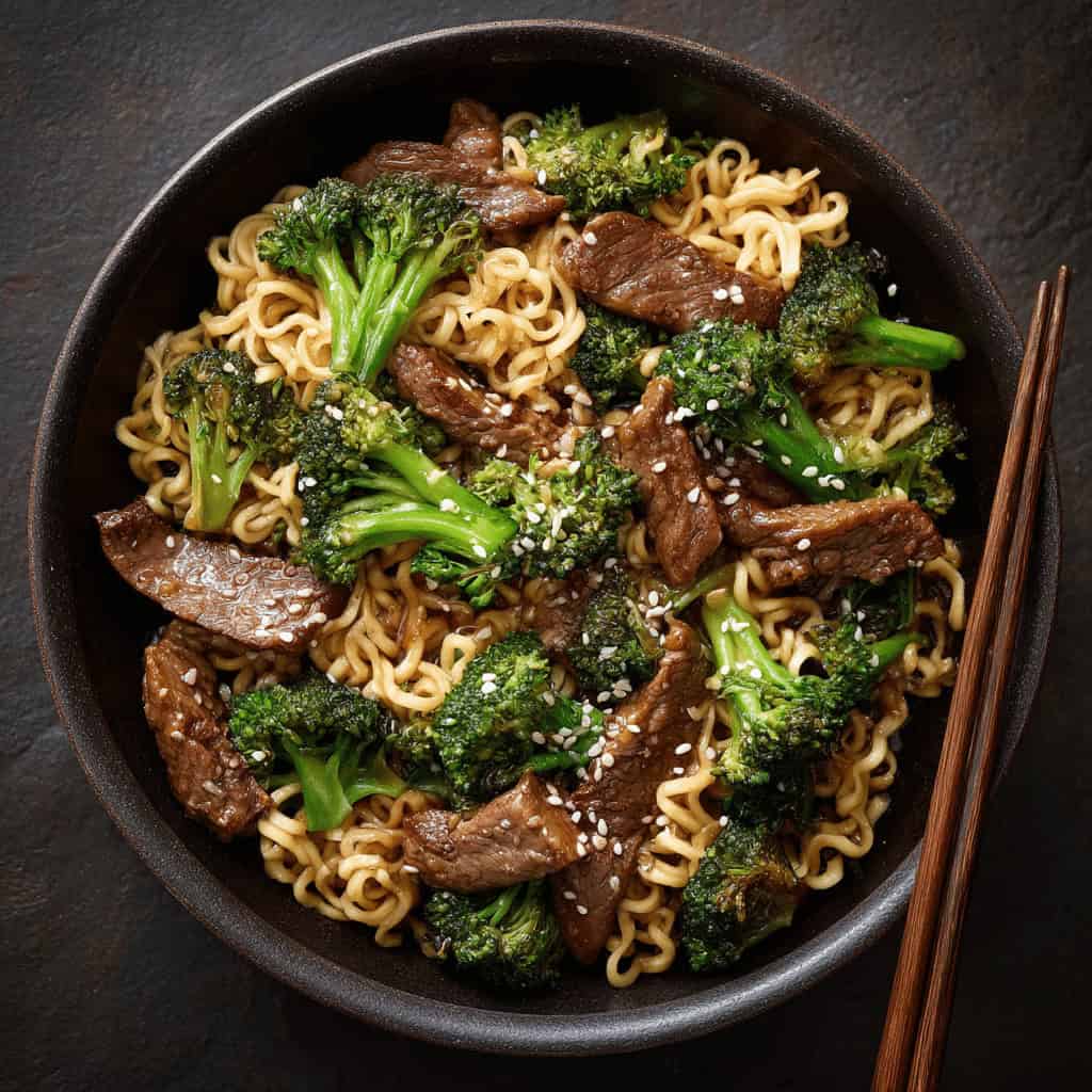 This easy stir fry brings together tender beef, crisp broccoli, and chewy ramen noodles all coated in a rich, savory sauce. The entire dish comes together in about 30 minutes, making it perfect for busy weeknights when you’re craving Asian flavors but don’t want to order takeout.
