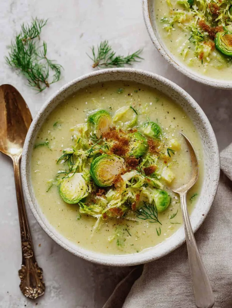How can I make this Brussels sprout soup recipe less bitter? The cooking method in this recipe naturally reduces bitterness, but you can also add a pinch of sugar or a splash of apple cider vinegar to balance the flavors. Make sure not to overcook the Brussels sprouts initially.