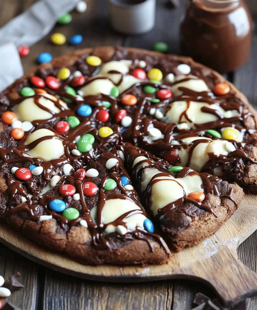 This Chocolate Brownie Pizza combines the best of two beloved desserts into one unforgettable treat. The fudgy brownie base provides the perfect canvas for sweet, colorful toppings, creating a dessert that’s as fun to make as it is to eat. Whether you’re hosting a party, looking for a unique dessert to bring to a potluck, or simply craving something special for family movie night, this recipe is guaranteed to impress. The combination of textures and flavors – from the rich, chocolatey brownie to the creamy white chocolate chips and crunchy candy pieces – creates a dessert experience that will have everyone asking for seconds. Give this Chocolate Brownie Pizza a try and watch it become a new family favorite!