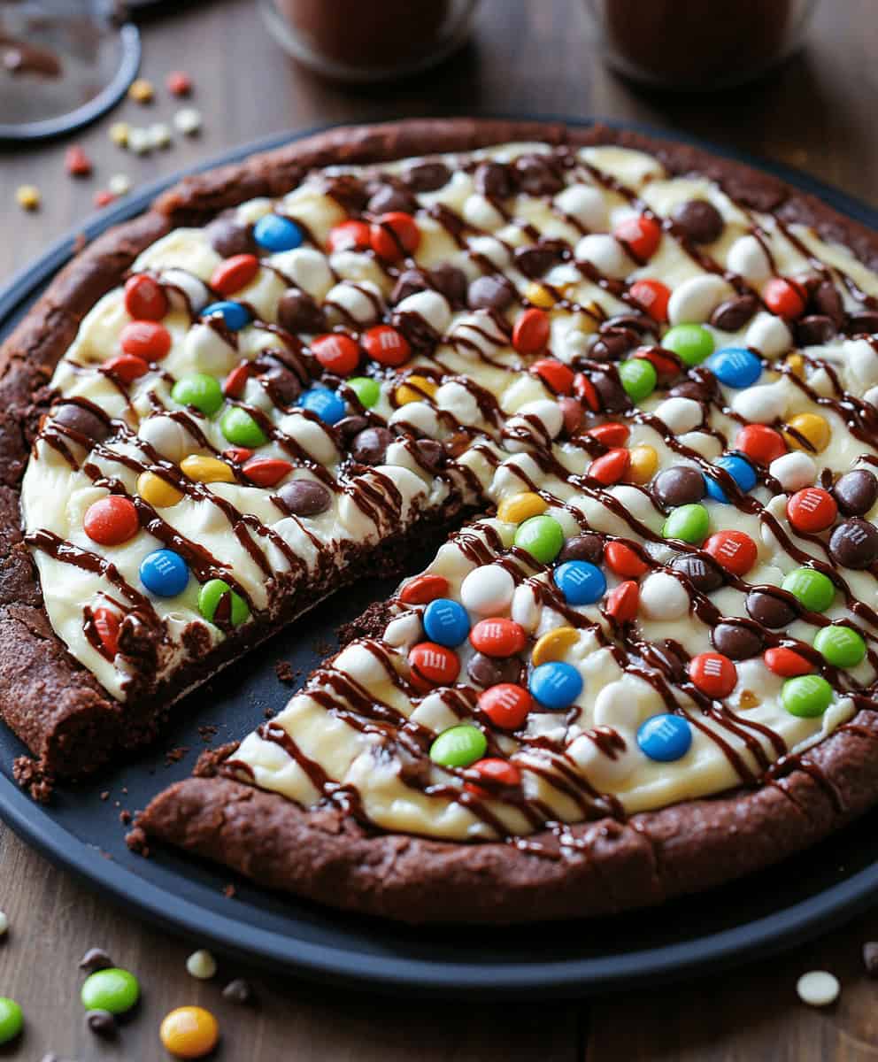 This incredible Chocolate Brownie Pizza combines the fudgy goodness of a classic brownie with the fun, shareable nature of pizza. Topped with white chocolate chips and colorful M&M’s, it’s a dessert that delivers both visual appeal and amazing flavor. Perfect for parties, family gatherings, or anytime you need a showstopping sweet treat!