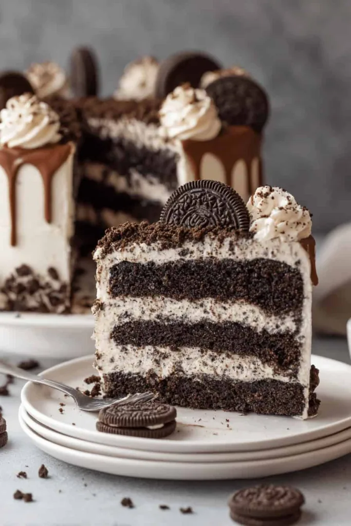 Store the completed Ultimate Cookies and Cream Cake Recipe covered in the refrigerator for up to one week. The ganache and buttercream frosting help preserve moisture, keeping the cake fresh longer than unfrosted versions.