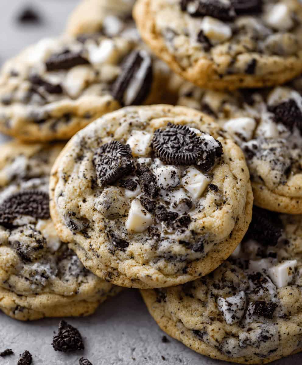 The cornstarch in this recipe is the secret ingredient that keeps these cookies incredibly soft and chewy. Don’t skip it! If you prefer your cookies less sweet, you can reduce the white sugar by 2 tablespoons. For extra indulgence, press a few additional chocolate chips and Oreo pieces on top of each cookie before baking. These cookies are best enjoyed within the first few days but will stay fresh when properly stored.