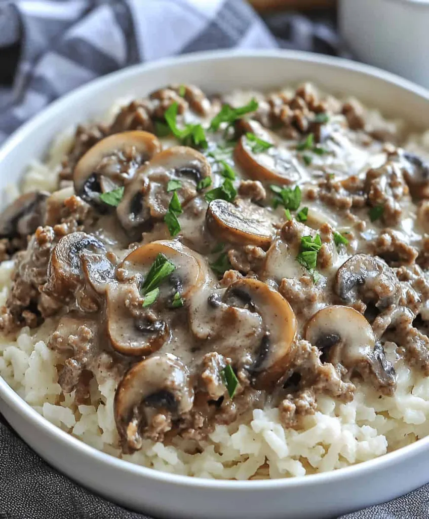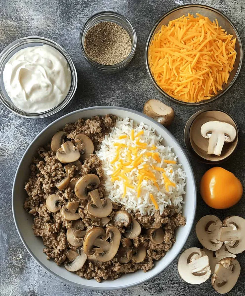 This Ultimate Creamy Beef & Mushroom Rice Bake is a game-changer for several reasons. First, it’s a complete one-dish meal that eliminates the need for multiple pots and pans, saving you time on both cooking and cleanup. The combination of savory ground beef and umami-rich mushrooms creates a depth of flavor that’s both sophisticated and comforting. The rice cooks perfectly in the creamy sauce, absorbing all the delicious flavors while maintaining its texture.