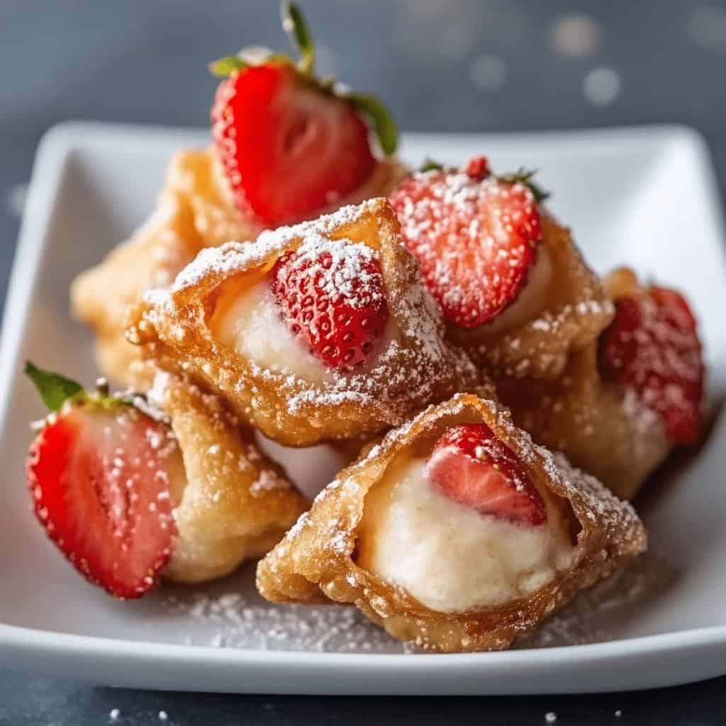 A creative fusion dessert, these bites feature a rich, creamy cheesecake filling with a burst of strawberry flavor, all encased in a crispy, deep-fried wonton wrapper. They’re perfect for sharing at parties or enjoying as a unique sweet treat.