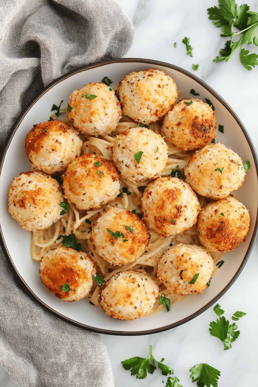 Garlic Butter Chicken Balls with Creamy Parmesan Pasta