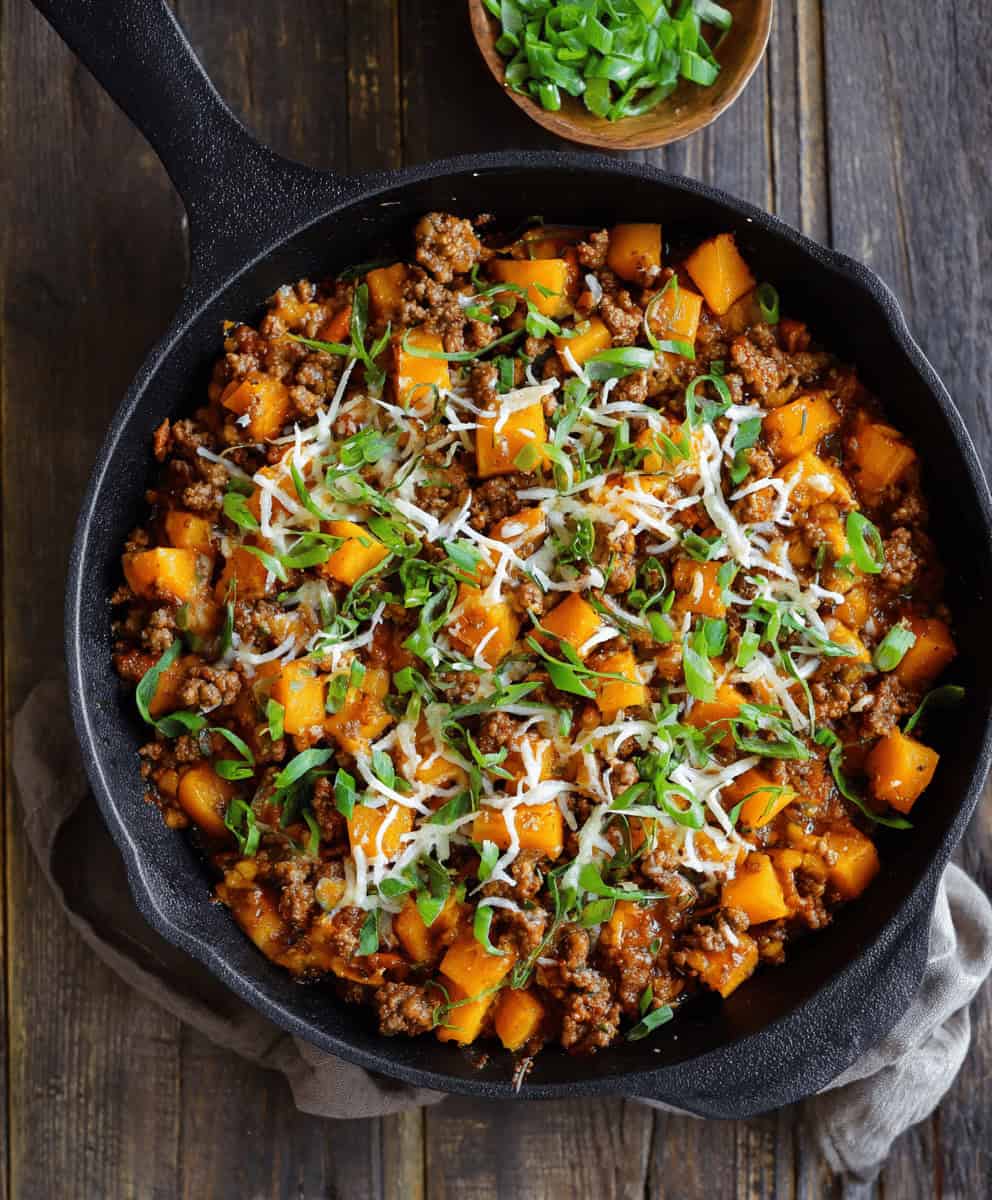 Step 4: Add Butternut Squash Add the cubed butternut squash to the skillet and stir to combine with the beef mixture. Cook for 2-3 minutes, allowing the squash to begin softening.