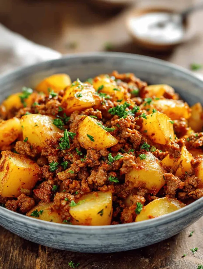 Make-Ahead Option: This Ground Beef with Potatoes Recipe can be prepared up to one day in advance. Store covered in the refrigerator and reheat gently on the stovetop with a splash of broth if needed to restore moisture.