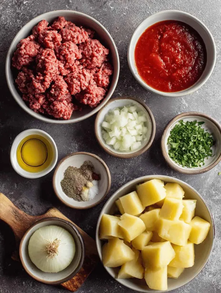 Q: How can I make this Ground Beef with Potatoes Recipe healthier? A: Use lean ground beef (93/7), reduce the olive oil to 1 tablespoon, and add extra vegetables like diced carrots, celery, or bell peppers. You can also substitute half the potatoes with cauliflower florets for a lower-carb version.