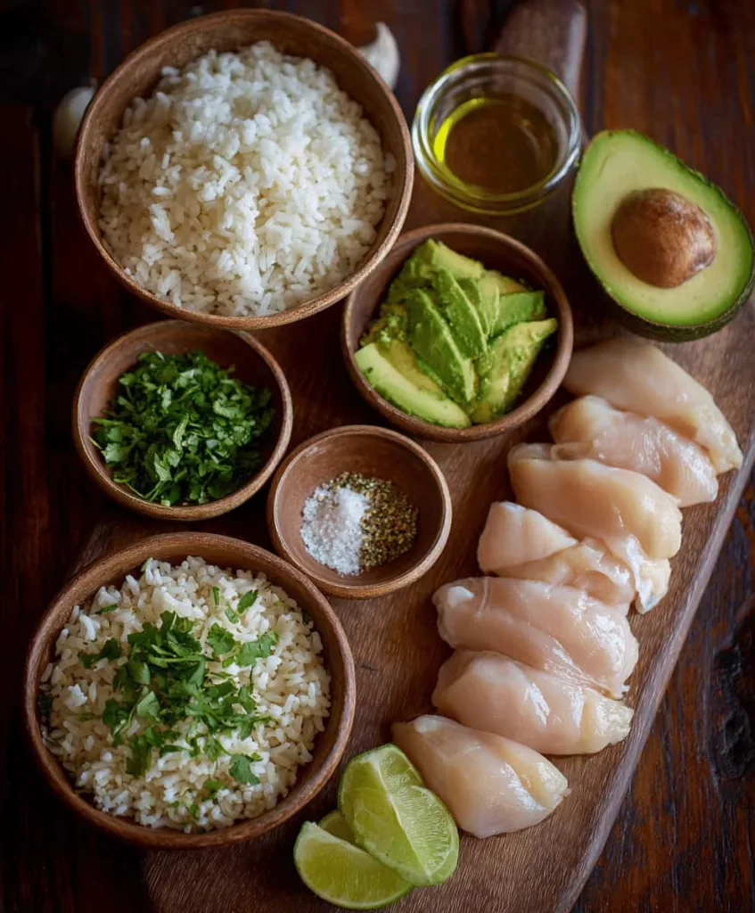 Can I make this recipe ahead of time? You can prepare the chicken and rice components up to 2 days in advance, but slice the avocado fresh just before serving to maintain the best color and texture.