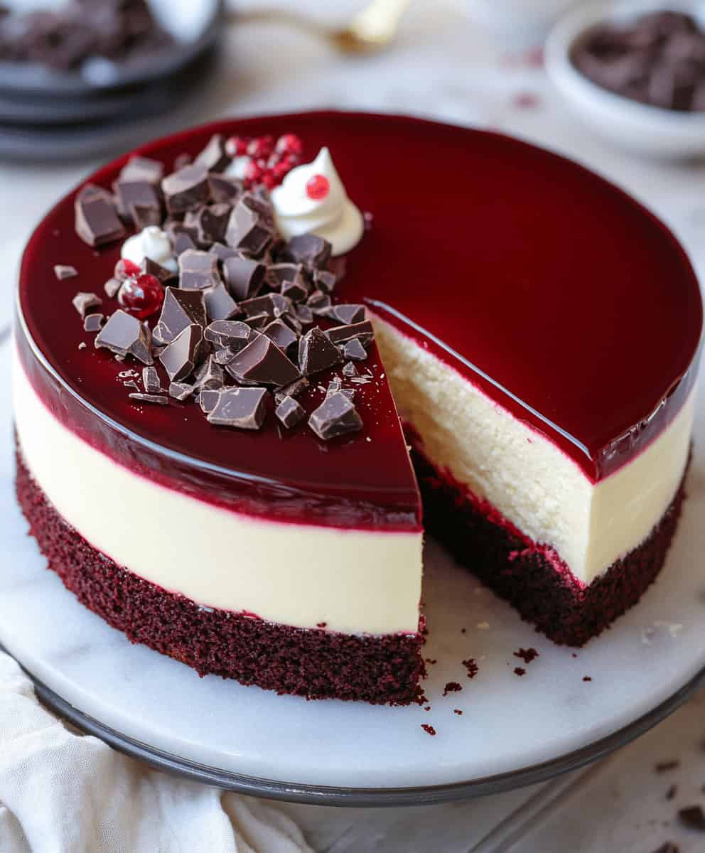 The beauty of this dessert is in its stunning look and mix of textures. Picture cutting into layers of deep crimson cake and creamy white cheesecake. It’s a feast for the eyes as much as the taste buds.