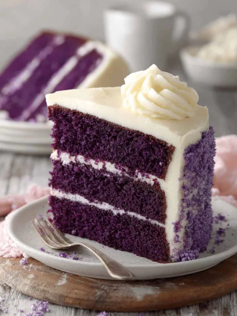 This Purple Velvet Cake with Cream Cheese Frosting Recipe delivers everything you want in a special occasion dessert: stunning visual appeal, incredible flavor, and a texture that melts in your mouth. The vibrant purple color makes it perfect for themed parties, gender reveals, or any time you want to create something truly memorable. With its moist, tender crumb and rich cream cheese frosting, this cake proves that sometimes the most beautiful desserts are also the most delicious. Whether you’re an experienced baker or trying velvet cake for the first time, this recipe’s clear instructions and helpful tips ensure success every time you make it.