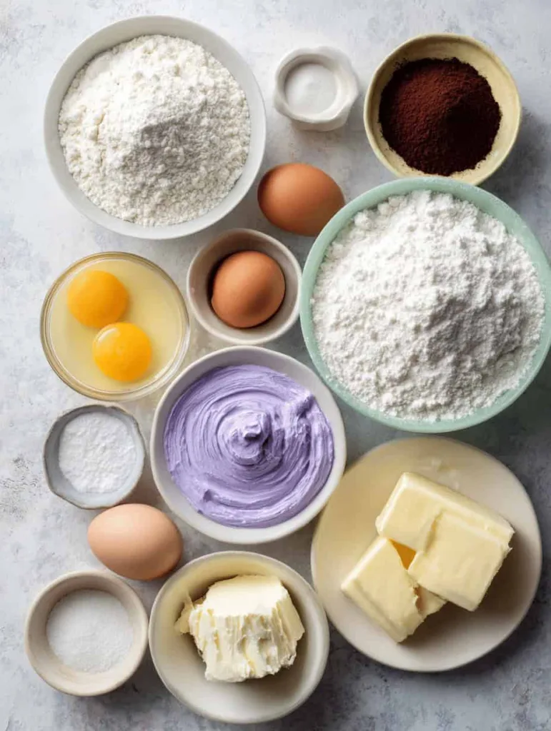 The key to this Purple Velvet Cake with Cream Cheese Frosting Recipe lies in the balance of ingredients that create the signature velvet texture. The combination of buttermilk and vinegar creates a tender crumb, while the small amount of cocoa powder adds depth without overwhelming the flavor. The cream cheese frosting provides the perfect tangy contrast to the sweet cake layers.