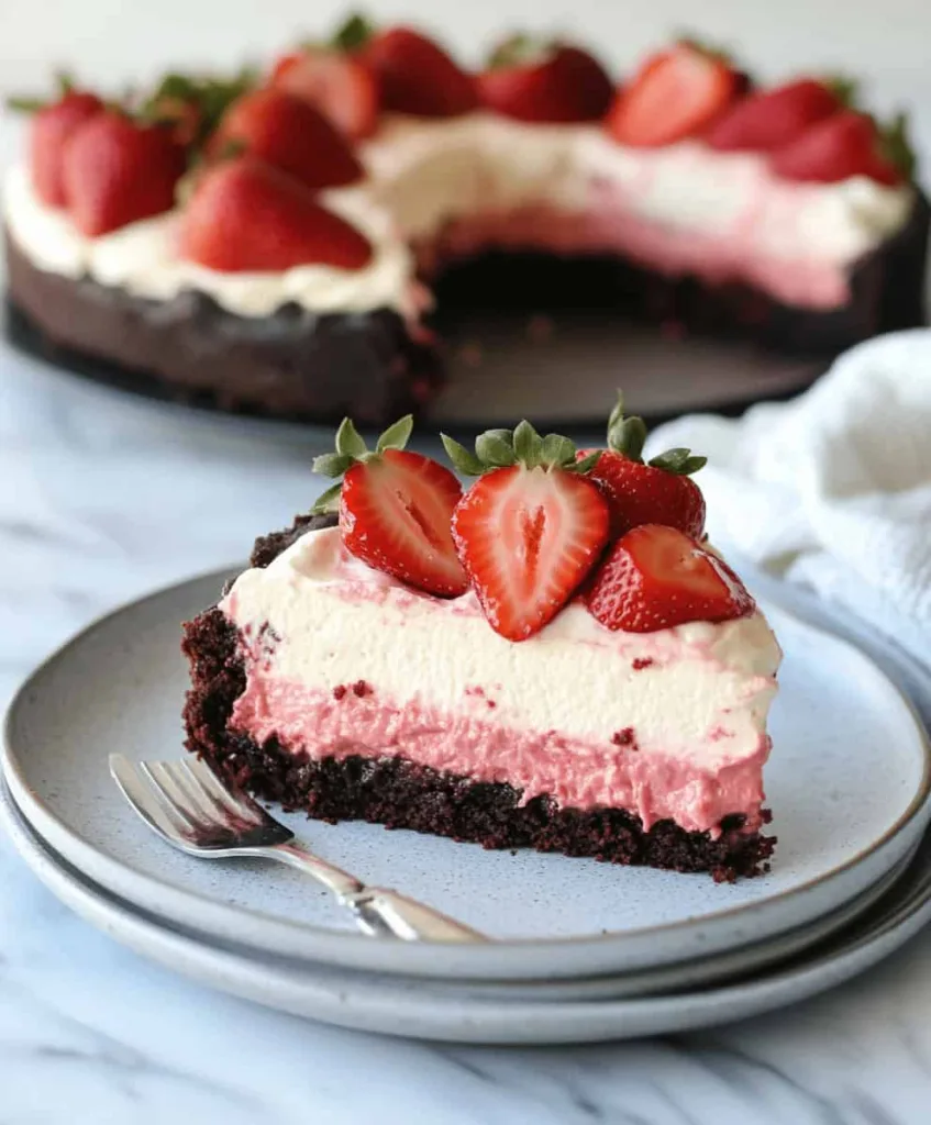 What makes this recipe special is its perfect balance of flavors and textures. The subtle chocolate notes in the red velvet cake complement the rich cream cheese layer beautifully, while the fresh strawberries provide a refreshing finish that cuts through the richness. Whether you’re celebrating Valentine’s Day, a birthday, or simply want to treat yourself to something extraordinary, this dessert delivers both visual impact and incredible taste.