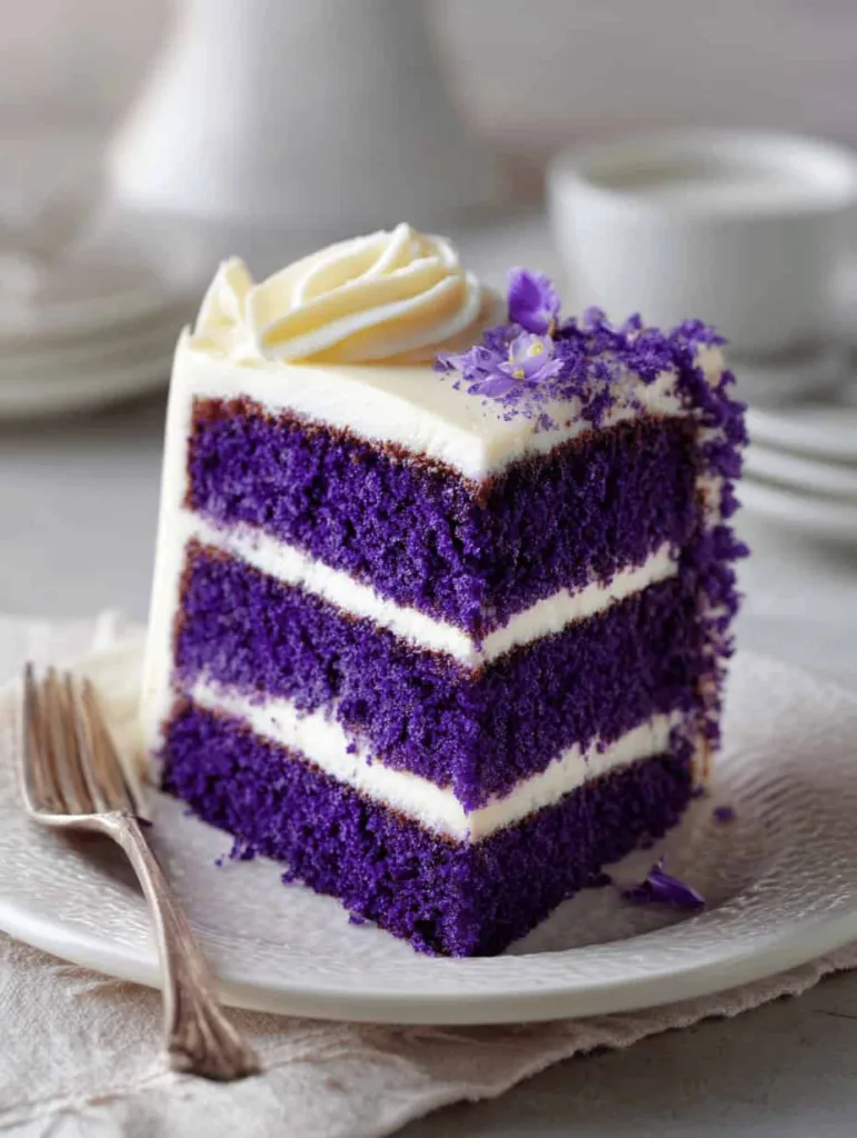 This Royal Purple Velvet Cake with Creamy Vanilla Frosting combines the beloved tangy-sweet flavor of traditional velvet cake with a show-stopping royal purple color that makes any celebration feel extraordinary. The cake’s tender crumb pairs beautifully with the rich, creamy vanilla frosting, creating a perfect balance of flavors and textures.